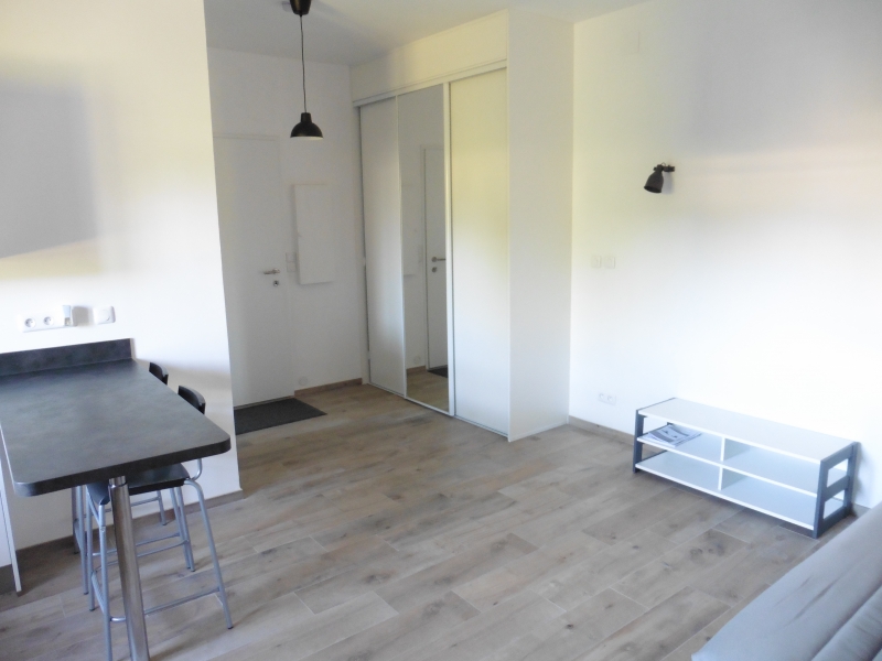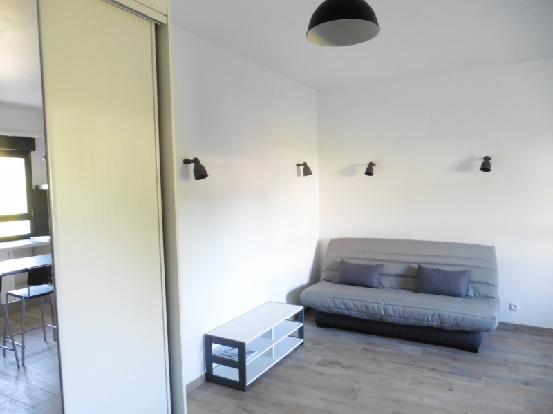 Dans un immeuble proche de la gare, au rez-de-chaussée, un appartement studio en meublé, de surface habitable d'environ 27 m² comprenant un séjour avec coin cuisine équipée, salle d'eau avec lavabo, cuvette WC et douche, rangements.